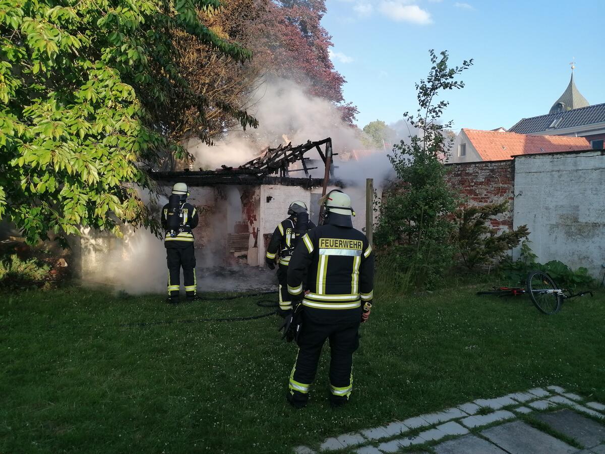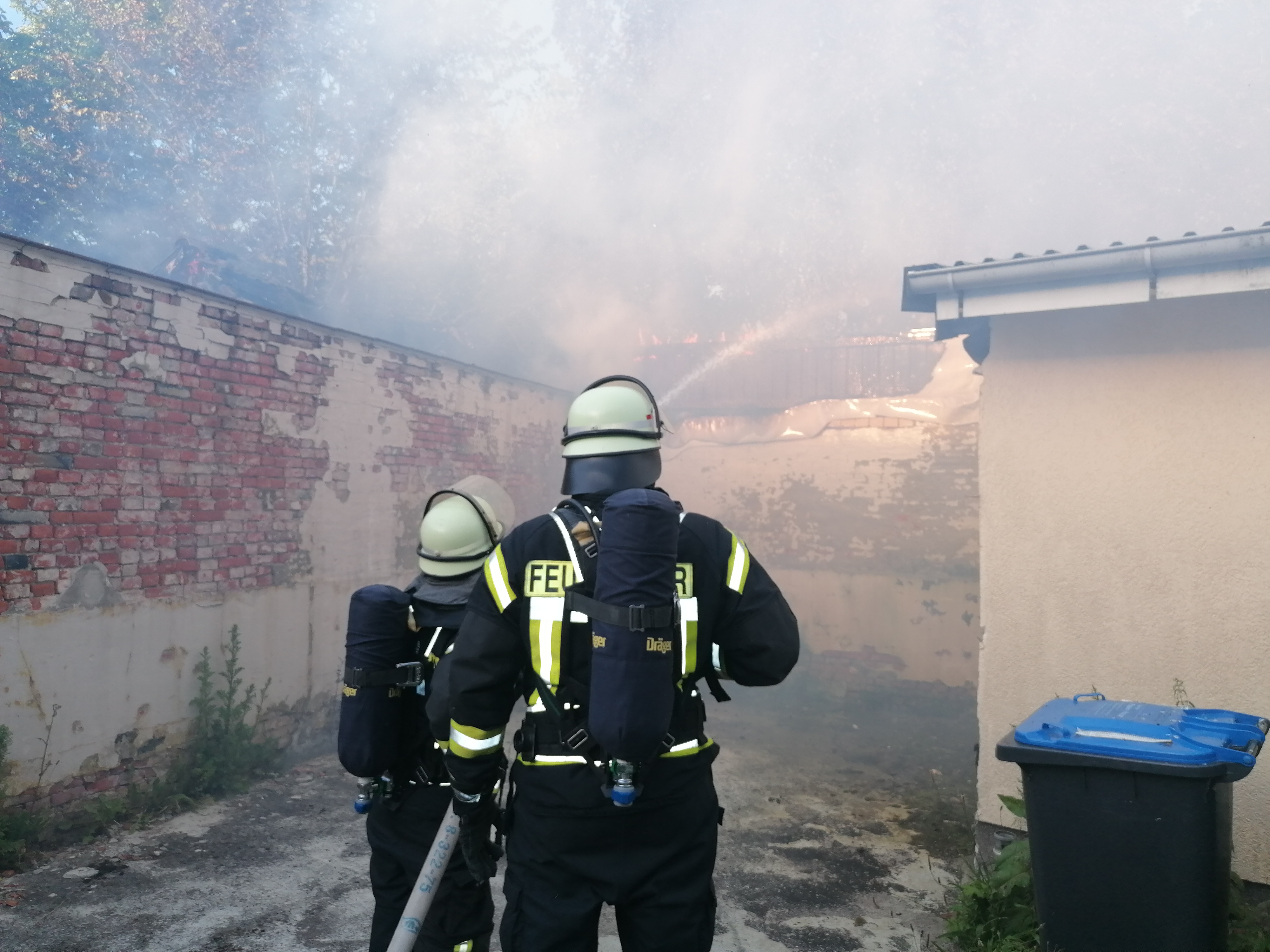 Knapp 12 Stunden nach Einsatz 52/2022 wurden wir erneut alarmiert. Ein Schuppen von ca. 5x10m, im eng bebauten Ortskern, stand bei unserem Eintreffen in Vollbrand. Das Feuer drohte akut auf direkt angrenzende Objekte überzugreifen. Personen waren nicht in Gefahr. Durch unseren schnellen Einsatz konnte das Feuer mit insgesamt drei C-Rohren durch Trupps unter schwerem Atemschutz zügig eingedämmt und eine weitere Ausbreitung verhindert werden. Mittels Wärmebildkamera wurde die Brandstelle abschließend kontrolliert und wir konnten diesen Einsatz nach etwa 2 Stunden beenden.