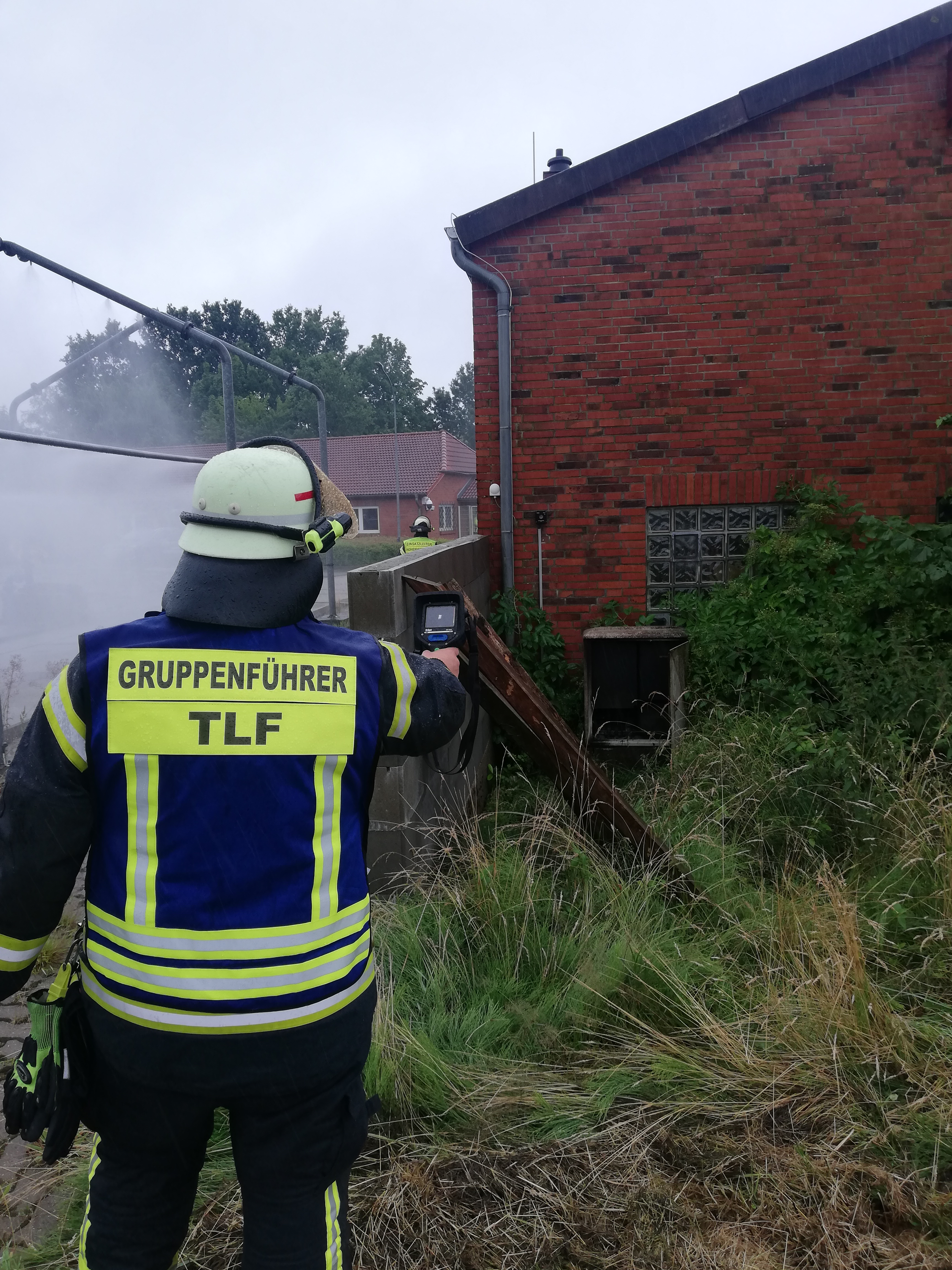 Am Morgen wurden wir mit dem Stichwort "Feuer, Stromkasten explodiert, starke Rauchentwicklung" alarmiert. Die erste Lage ergab sowohl eine Rauchentwicklung als auch die Auslösung einer Sprinkleranlage an dem betroffenen Objekt. Bei der weiteren Erkundung konnte eine noch leichte Rauchentwicklung in einem Stromverterteilerkasten festgestellt werden. Nach Kontrolle mittels Wärmebildkamera waren bis zum Eintreffen des Energieversorgers durch die Feuerwehr keine weiteren Maßnahmen erforderlich.