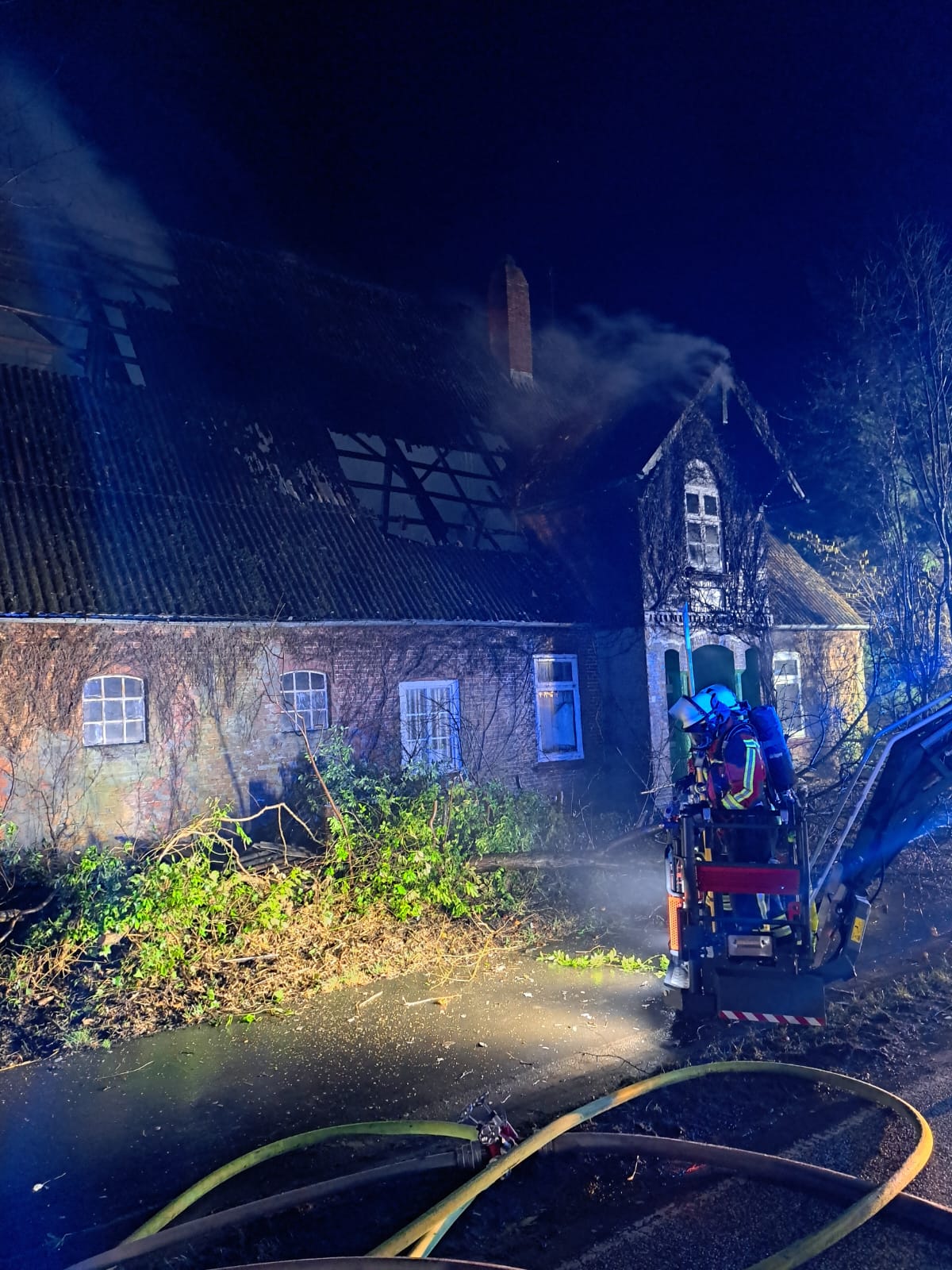 Am späten Abend wurden wir gemeinsam mit den Kameradinnen und Kameraden der Freiwilligen Feuerwehren Nienborstel, Todenbüttel und Stafstedt zu einem Dachstuhlbrand alarmiert. Das Dach musste geöffnet werden, um an die Zwischendecke zu gelangen, wo Stroh und Heu gelagert wurden. Wir konnten das Abbrennen des Gebäudes verhindern und lediglich der Dachbereich wurde zerstört. Gegen 3:30 konnte der Einsatz beendet werden.