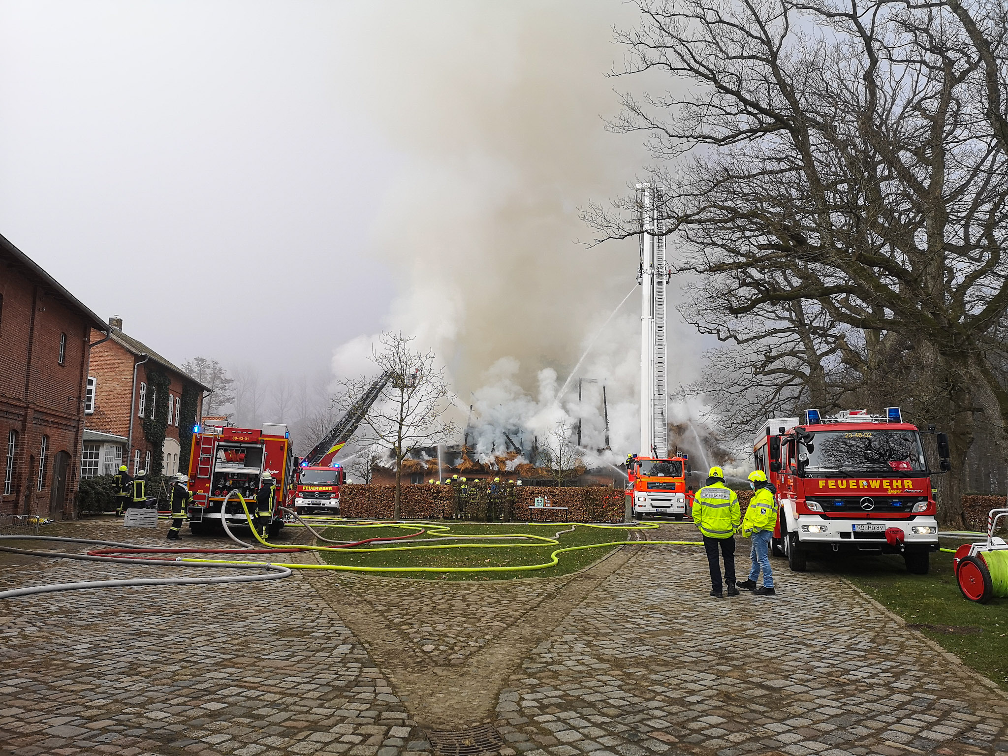 Um kurz nach 10:00 gingen die ersten Meldungen über ein Feuer im Dachbereich eines Reetdachhauses in Beringstedt bei der Leitstelle Mitte ein. Umgehend wurde ein Großaufgebot der Feuerwehren alarmiert.