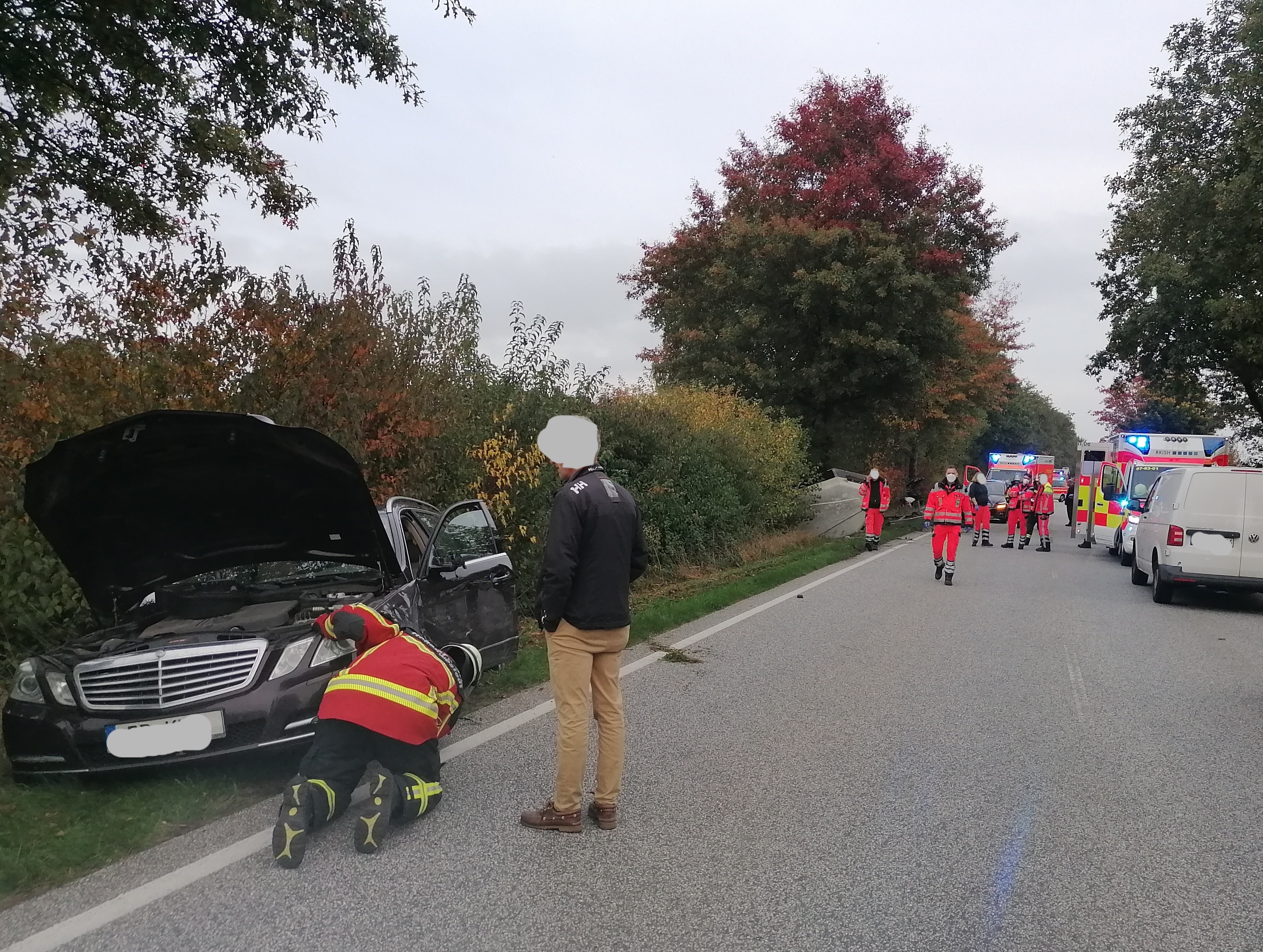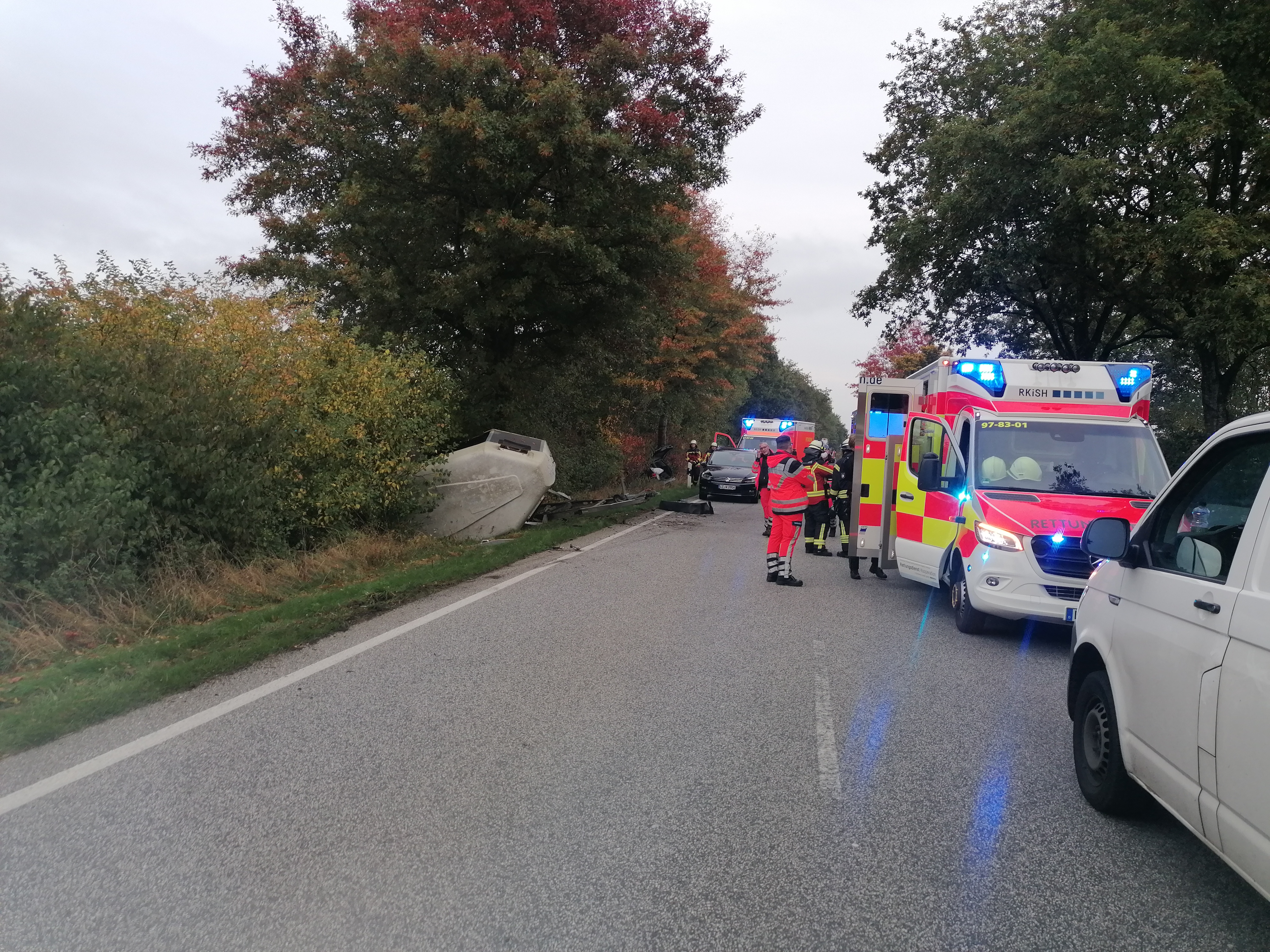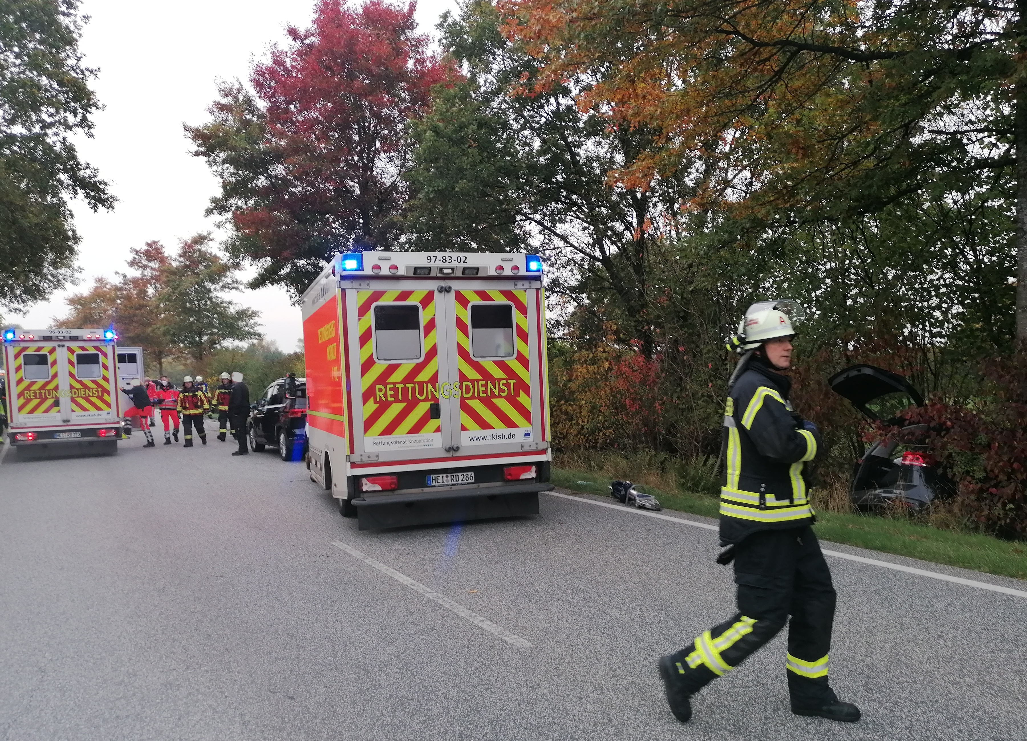 Am späten Nachmittag wurden wir zur Unterstützung des Rettungsdienstes alarmiert. Bei einem schweren Verkehrsunfall unterstützten wir bei der medizinischen Versorgung von Verletzten. Zusätzlich sicherten wir die Unfallfahrzeuge und stellten den Brandschutz sicher.