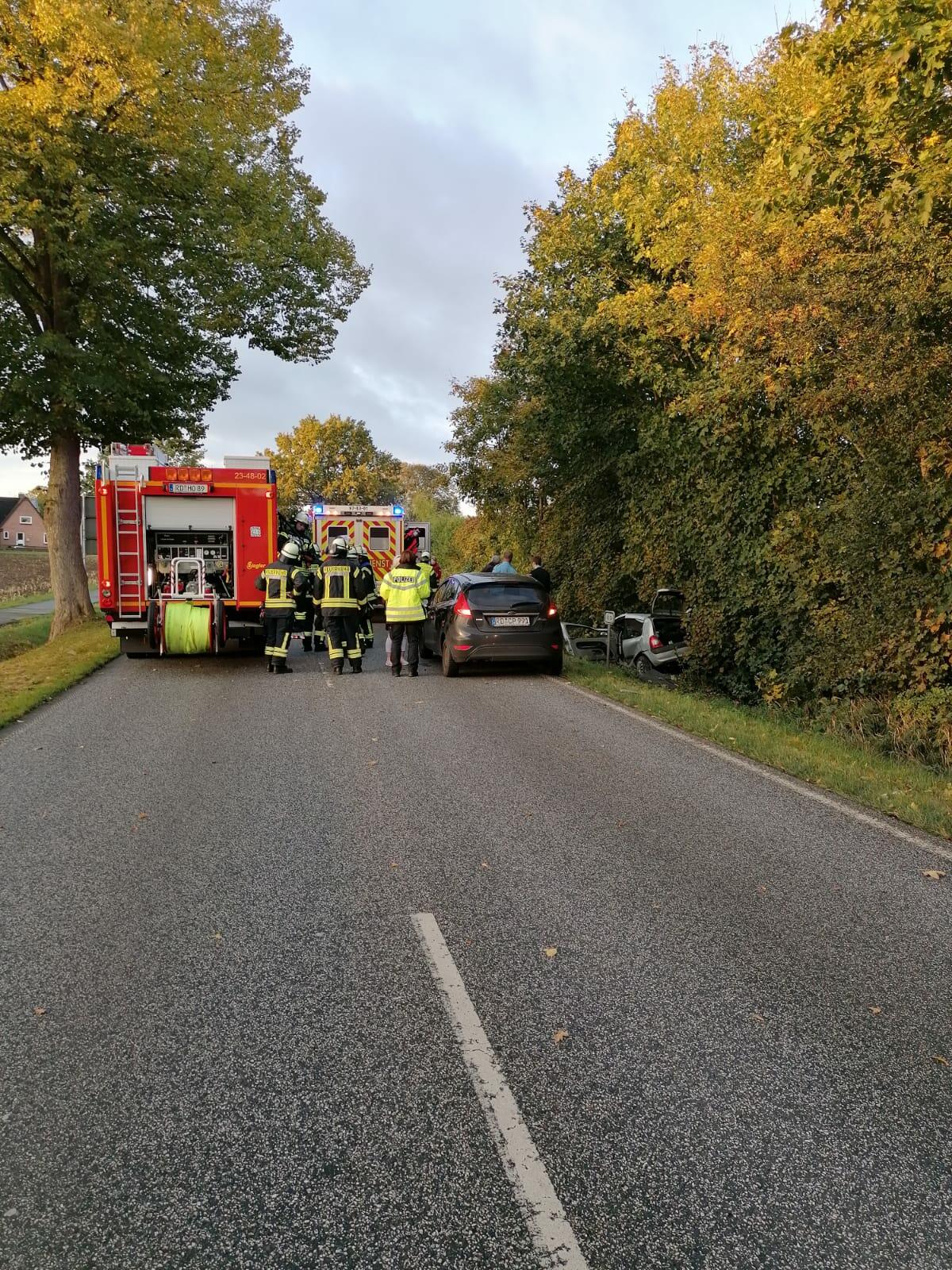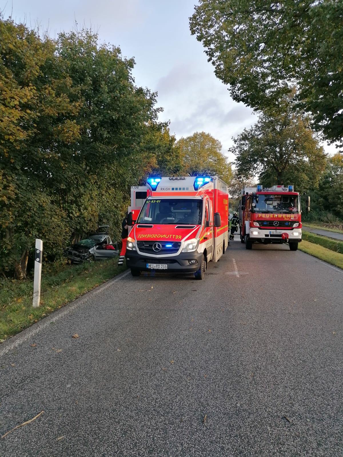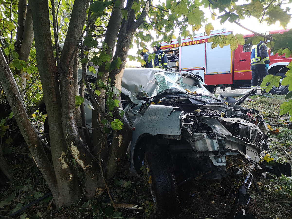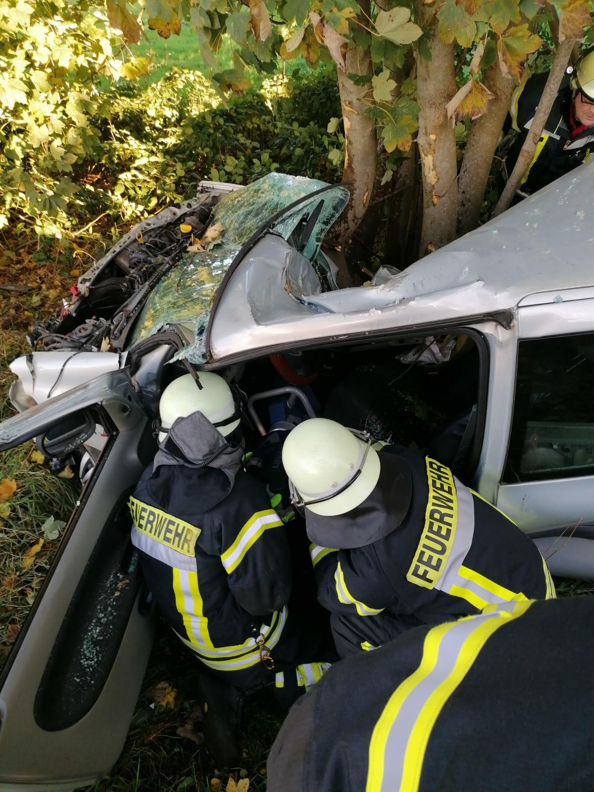 Kurz nach 08:30 Uhr wurden wir mit der Meldung "PKW im Graben, eine Person klemmt" alarmiert. Ein PKW kam auf der B77 Höhe Jahrsdorf aus noch ungeklärter Ursache von der Straße ab und prallte gegen einen Baum. Beim Eintreffen der ersten Kräfte stellte sich heraus, dass die Ersthelfer den bewusstlosen Fahrer bereits aus dem Unfallfahrzeug befreien konnten. Wir unterstützen den Rettungsdienst bei der Versorgung des lebensbedrohlich verletzten Patienten, sicherten die Unfallstelle ab und stellten den Brandschutz sicher. Nach etwas über einer Stunde konnten wir wieder einrücken und an unsere Arbeitsplätze zurückkehren.