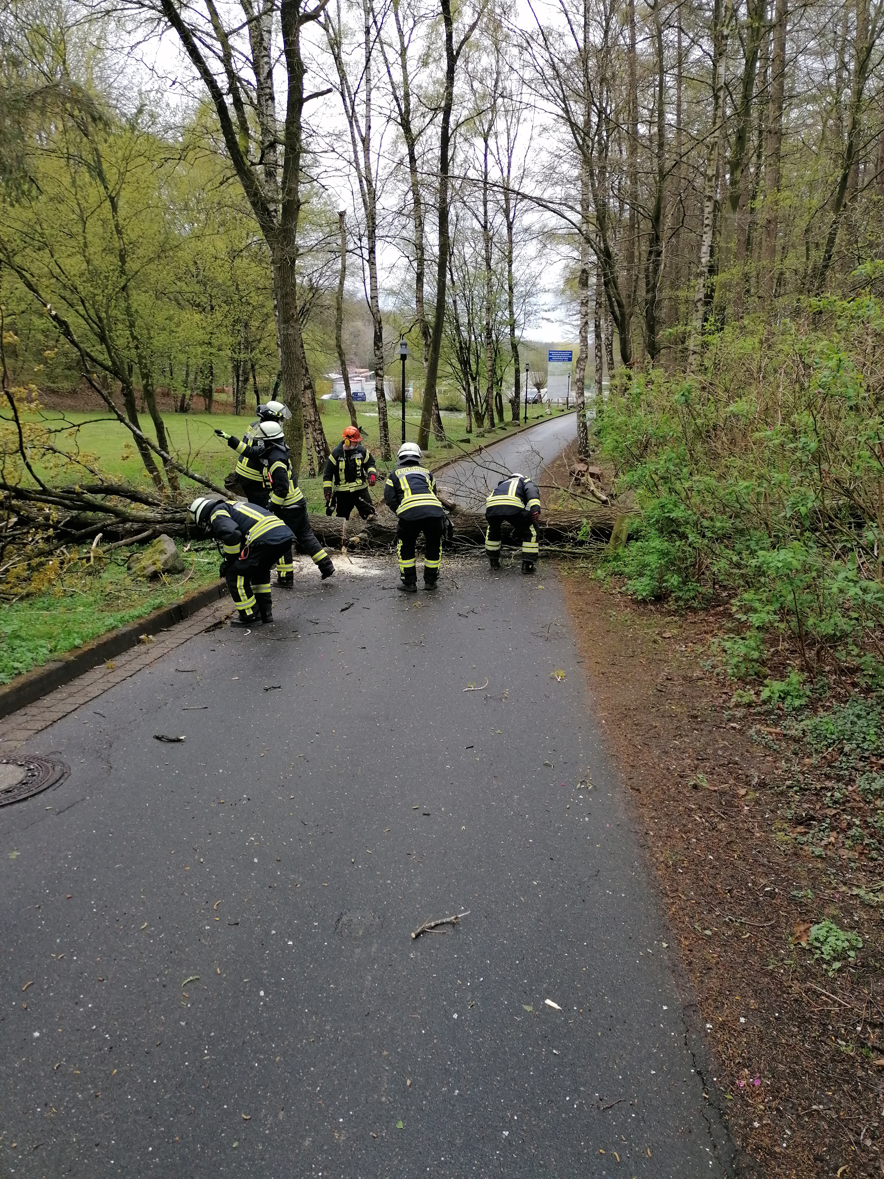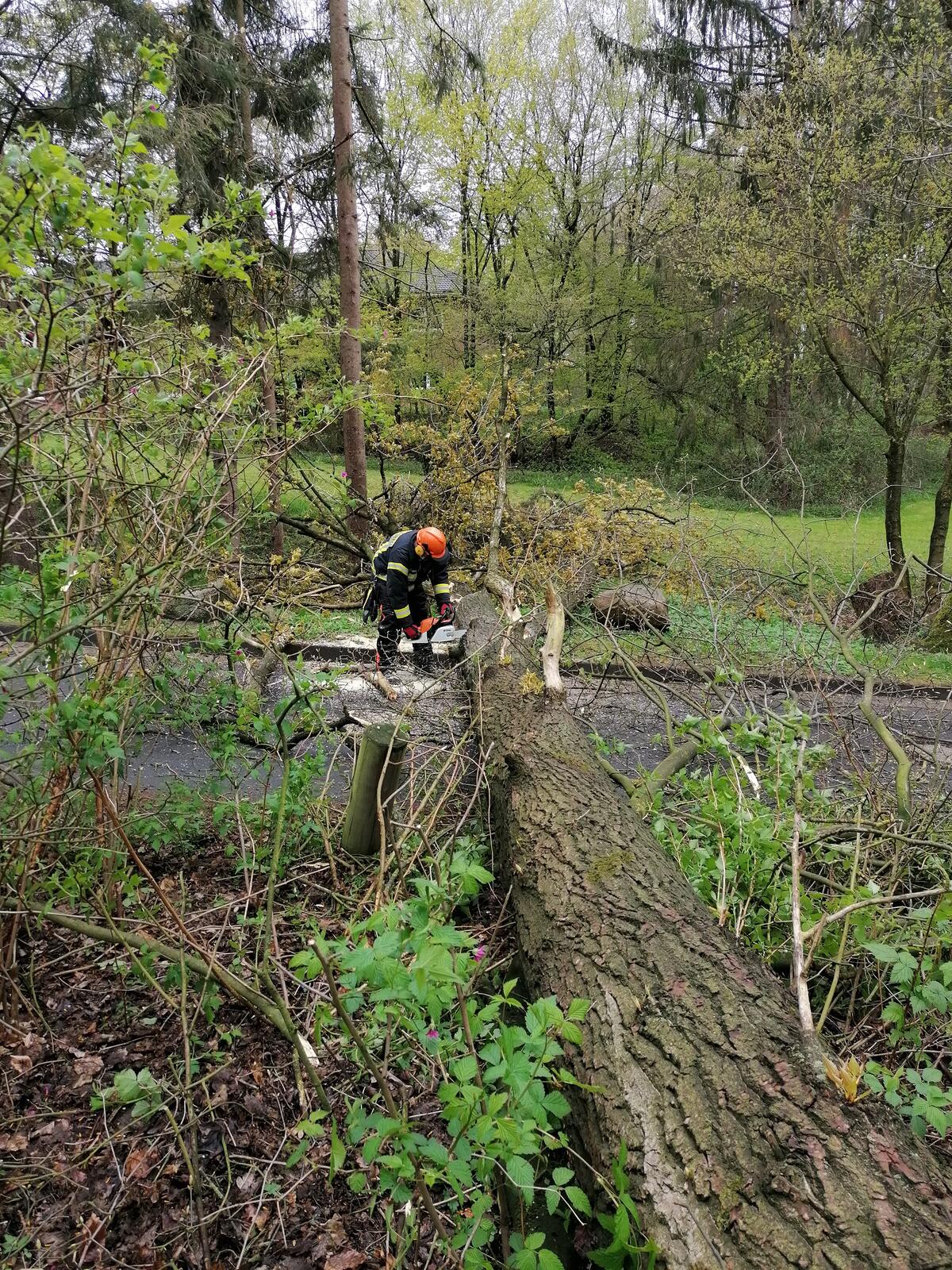 Zu einem umgestürzten Baum wurden wir am Vormittag alarmiert. Mittels Kettensäge wurde der Baum kurzerhand im Bereich der Fahrbahnbreite zerkleinert und die Fahrbahn wieder frei gemacht.