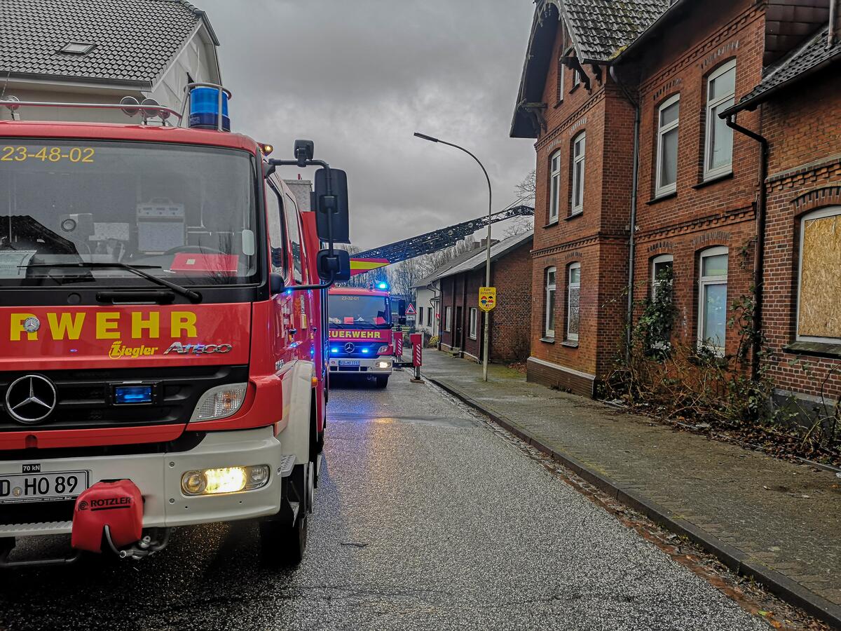 Am Morgen wurden wir zu einem wetterbedingten Einsatz alarmiert. Von einem Haus drohten Teile des Daches auf den Gehweg zu fallen. Wir entfernten die losen Dachziegel und konnten anschließend wieder einrücken.