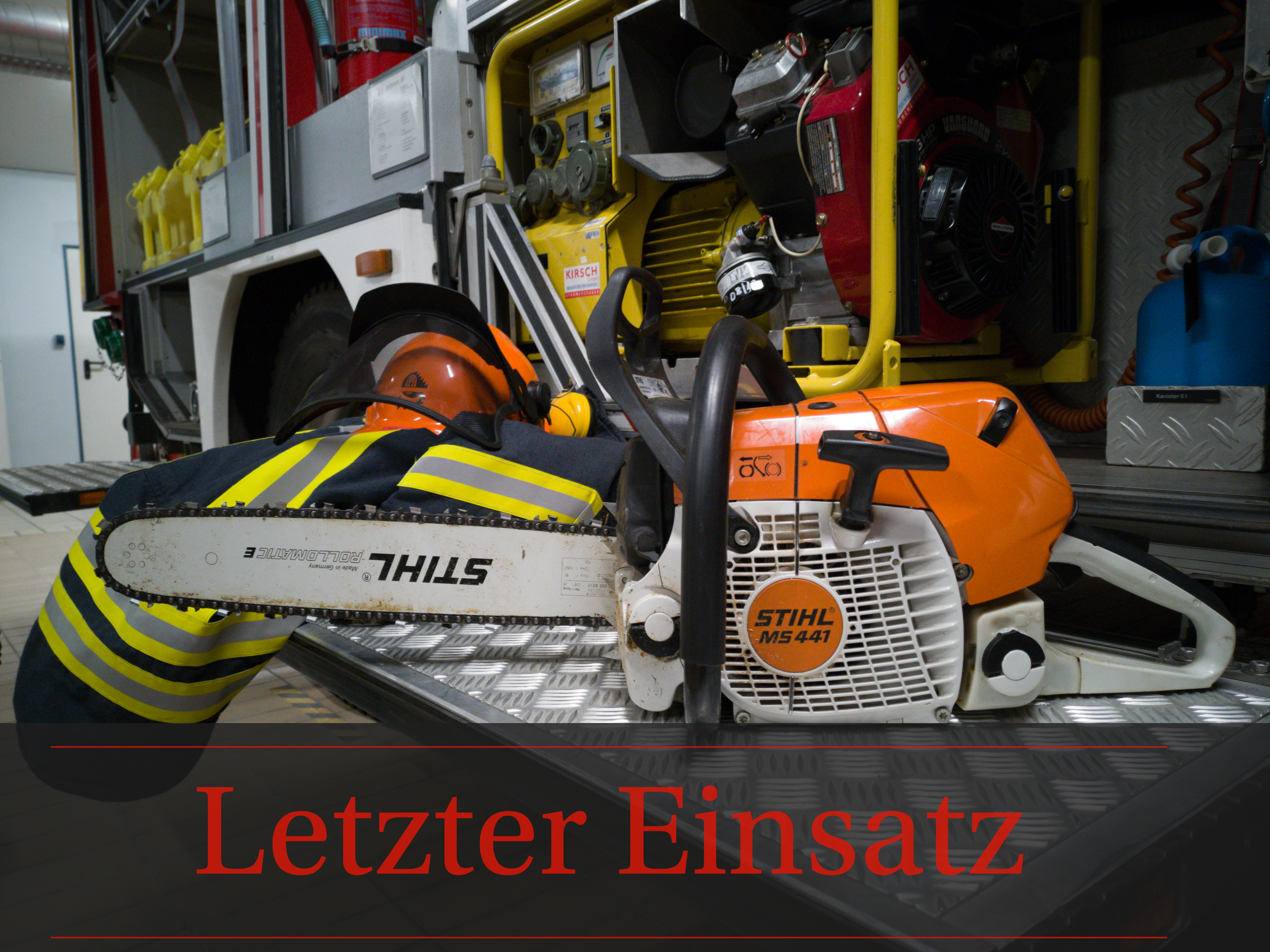 Kurze Zeit später wurden wir zum 2. Einsatz alarmiert. Durch den in Böen stärkeren Wind wurde eine größere Eiche gespalten und versperrte die Straße. Wir beseitigten den Baum und konnten nach ca. einer Stunde wieder einrücken.