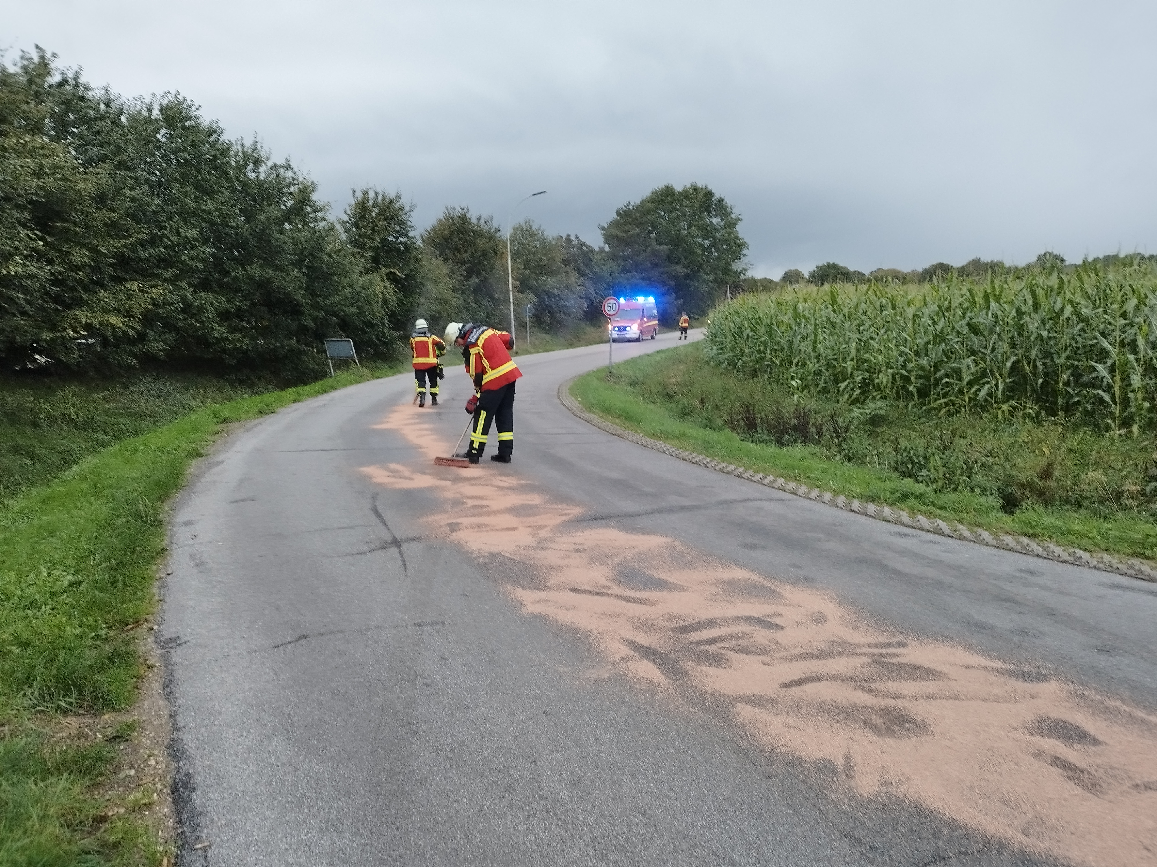 Gemeldet wurde uns am frühen Abend eine längere Ölspur. Wir brachten mehrere Säcke Bindemittel aus um die Betriebstoffe aufzunehmen. Die abschließende Straßenreinigung wurde durch die Gemeindewerke übernommen. Nach etwa einer Stunde konnten wir den Einsatz beenden.