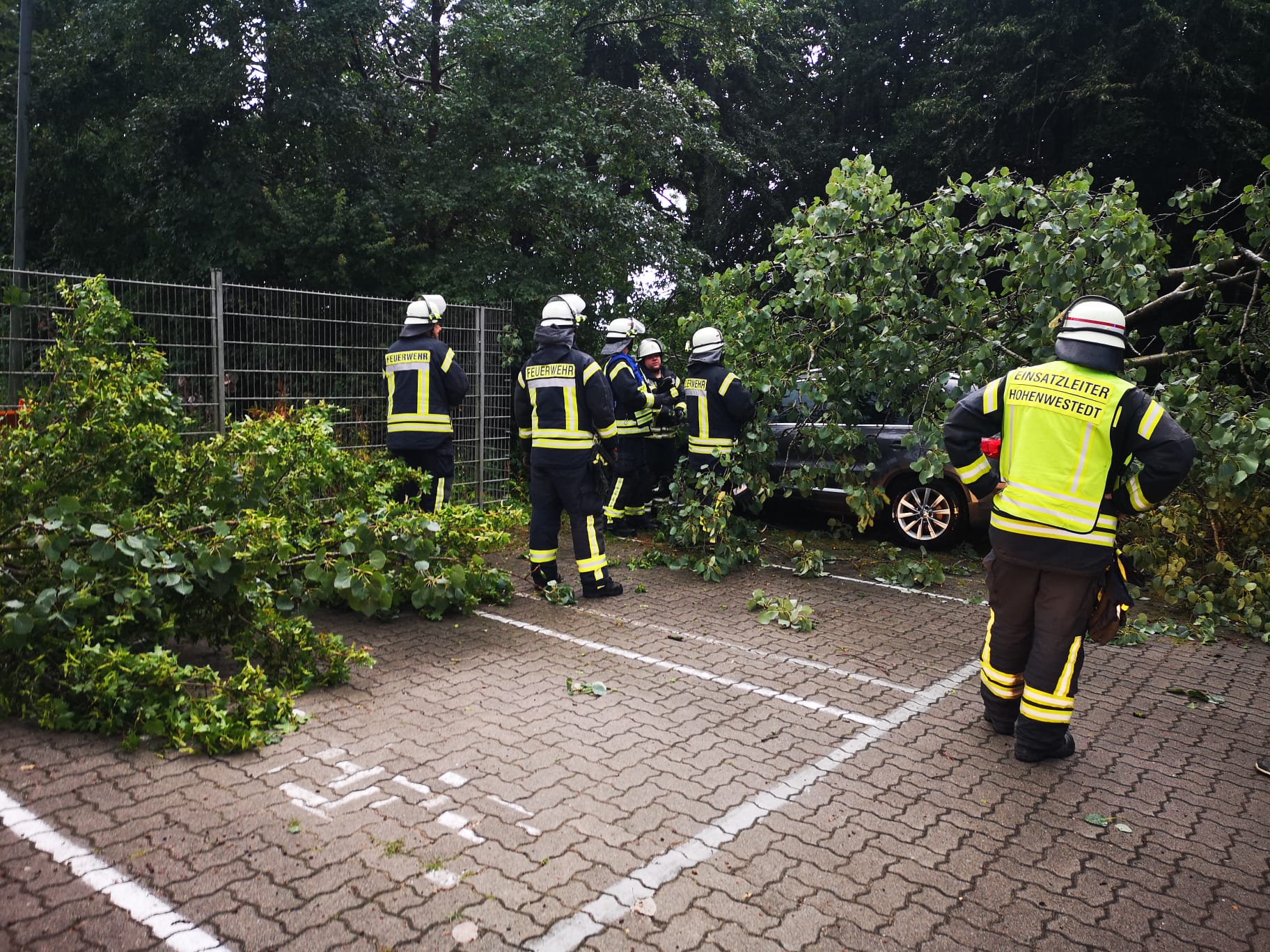 Aufgrund eines Gewitters mit Starkregen kam es am Abend zu mehreren wetterbedingten Hilfeleistungs-Einsätzen. So liefen diverse Keller voll, Straßen standen unter Wasser und Bäume fielen auf Straßen bzw. Wege sowie in einem Fall sogar auf einen PKW. Es blieb jedoch in allen Fällen glücklicherweise bei Sachschäden. Da die Vielzahl der Einsatzstellen priorisiert nacheinander abgearbeitet wurden, erhielten wir Unterstützung durch die Feuerwehr Nortorf mit ihrem Wassersauger. Gegen 23:30 waren alle Einsatzstellen abgearbeitet und alle Fahrzeuge wieder einsatzbereit.