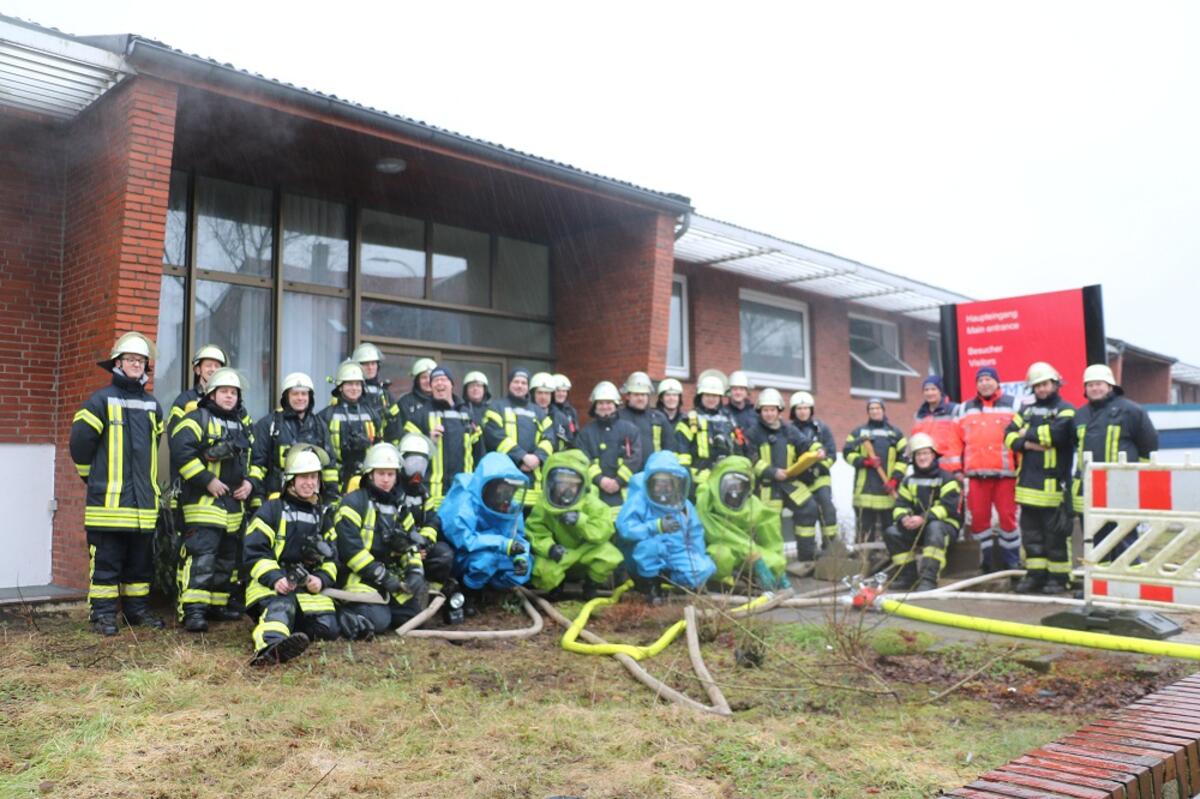 Am Samstag den 20. Februar 2016 ging es heiß her in den ehemaligen Räumlichkeiten der Fa. Amtec im Hohenwestedter Ortsteil Vaasbüttel. Gut 30 Feuerwehrleute aus Hohenwestedt, Beringstedt und Todenbüttel haben sich zusammengefunden, um eine Atemschutzübung in den zum Abriss vorbereiteten Räumen durchzuführen. Dazu wurden alle Teilnehmer in drei Gruppen eingeteilt. Jede Gruppe hatte eine Aufgabe zu bewältigen. Anschließend rotierten diese. Zu den Aufgaben gehörten zum einen die Personensuche bzw. –Rettung, die Brandbekämpfung und der Einsatz von Chemiekalienschutzanzügen. Die Führungskräfte hatten zusätzlich die Aufgabe der Abschnittleitung „Atemschutz“ und der Atemschutzüberwachung. Für die Personensuche musste ein ca. 80 Kg schwerer Übungsdummy aus dem Objekt gerettet werden. Der komplette Innenangriff konnte zudem mit unter Druck stehenden Angriffsleitungen vorgetragen werden, was zu einer zusätzlichen Belastung führte. Der gesamte Übungsbereich wurde dicht vernebelt und kleine kontrollierte Feuer in „Feuertonnen“ gelegt. So konnte auch eine Erwärmung der Räume realistisch nachgestellt werden. Am Ende und nach Belüftung des Objektes hatten die Kameraden noch die Möglichkeit mit den ihnen zur Verfügung stehenden Werkzeugen, Türen Fenster und Schließzylinder zu öffnen. Am Ende des Tages wurde die Übung in einer Manöverkritik als erfolgreich bewertet und soll u.a. als Erfahrungsaustausch und Kameradschaftspflege dienen.