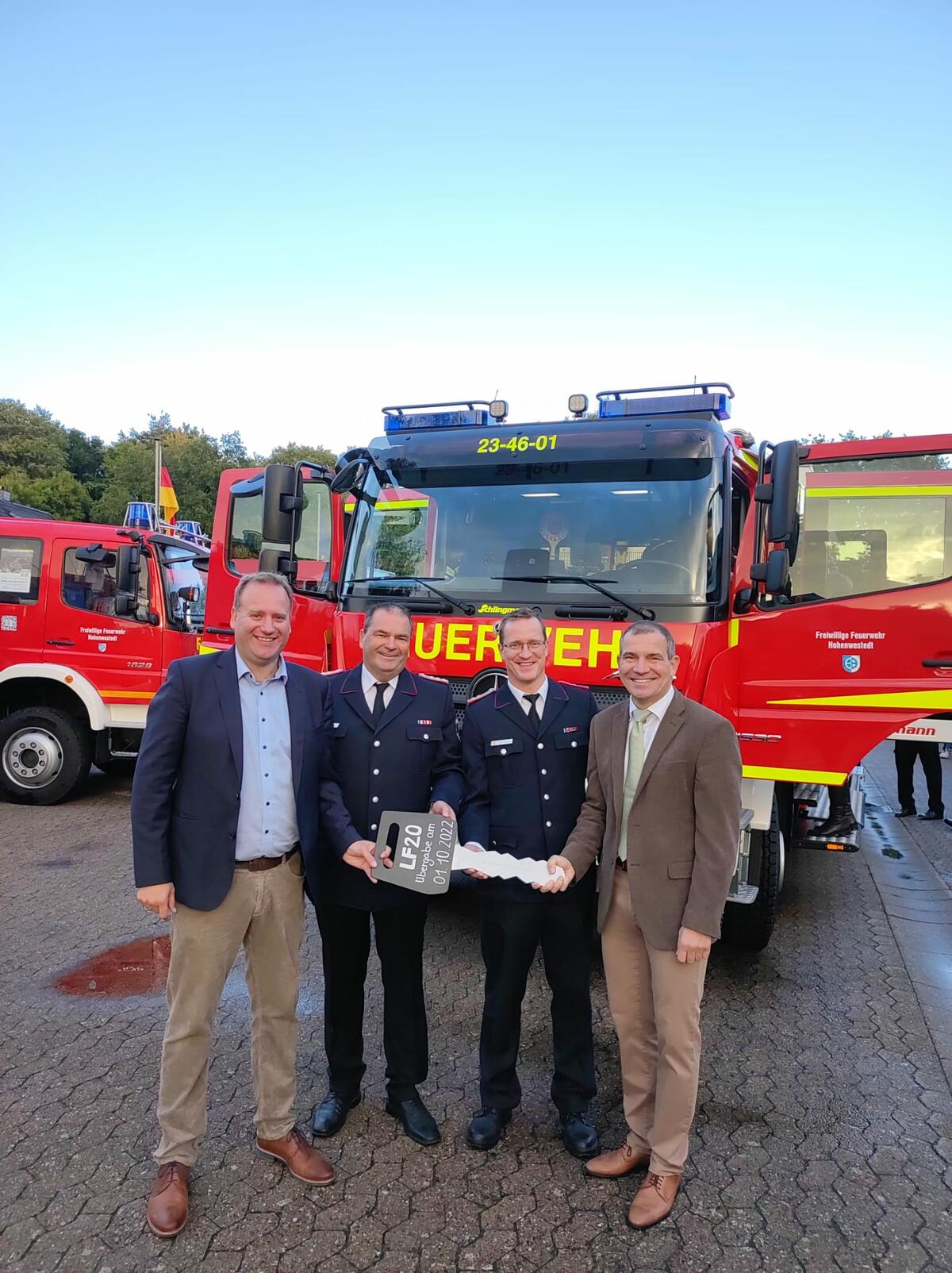 Am Samstag (1.10.) wurde unser neues LF 20 im Rahmen einer feierlichen Übergabe, durch unseren Bürgermeister sowie unseren Bürgervorsteher, nun offiziell in Dienst genommen. Zahlreiche Gäste von Politik und Feuerwehr, aber auch unsere Partnerinnen und Partner begleiteten die Veranstaltung. Bereits Anfang September wurde das Fahrzeug von uns abgeholt und die Kameradinnen und Kameraden intensiv eingewiesen. Das neue LF 20 ersetzt ein