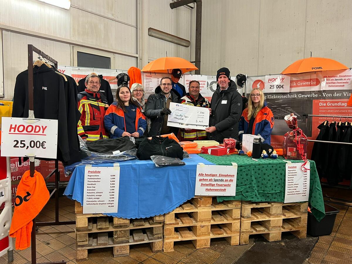 Am vergangenen Freitag unterstützte ein Abordnung unserer Wehr die Weihnachtsfeier der @pohl_gruppe in Hohenwestedt. Am Ende dieser Veranstaltung gab es für uns dann auch noch ein Geschenk, welches durch die beiden Geschäftsführer Paul und Hannes Pohl überreicht wurde. Es handelte sich um einen Check in Höhe von 8000 €. Etwa die Hälfte des Betrages stammte aus dem Verkauf von Merchandising - Artikel der Firma Pohl an dem Abend. Der Restbetrag wurde großzügig aufgestockt und zu unserer Freude an Wehrführer Thorsten Müller übergeben. Der Betrag wird der Kameradschaftskasse zu Gute kommen.